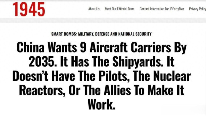 美媒《1945》12日报道,称美国国防部发布的《中国军力报告》中十年内完成九航母母战斗群是在夸大中国的威胁。并分别从飞行员的培训,战斗机的生产,发展核动力的经验,特别是海外基地的建设等等方面,阐述了在十年内再装备六航母,达到九航母战斗群的困难性。尤其在基地方面,说了很多。